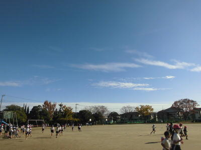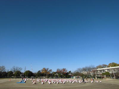 8:00 雲ひとつなく、よく晴れた空です。予定通り、持久走大会を実施します。