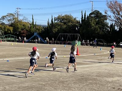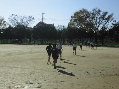 今週末には校内持久走大会が予定されています。今日の昼休みも、「RUN×3(ランランラン)」(持久走大会に向けて自分が走った周数を記録していく取組)で、自分の目標に向けて多くの児童が校庭を走っています。