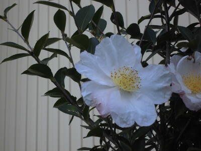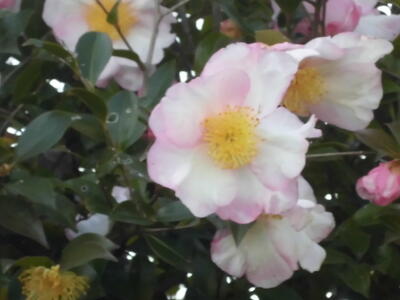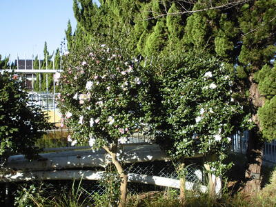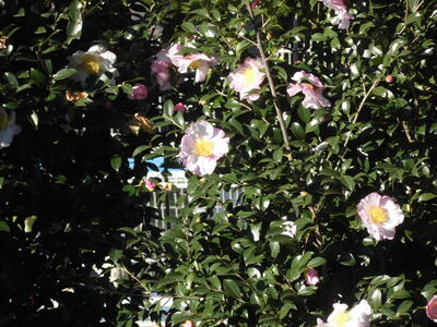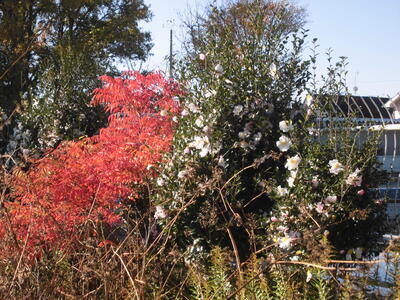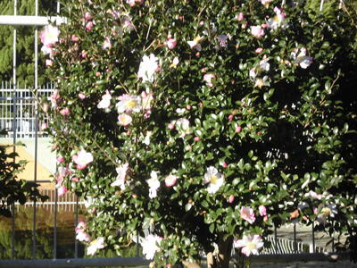 以前も紹介した学校のサザンカ、ますますきれいにたくさんの花を咲かせています。