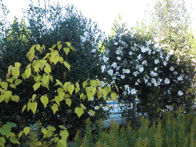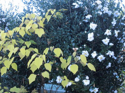 ( となりの赤や黄色い色づいた葉っぱとの対照がきれいです。)