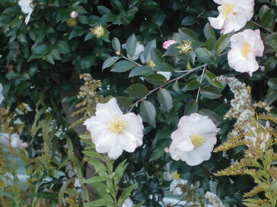 ( 白やピンクの花がきれいに咲いています。)