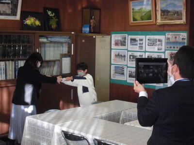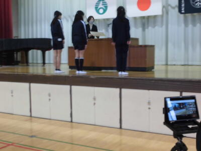 ( ↓ 賞状を受け取る場面は、各教室のモニターにリモートで流されます。)