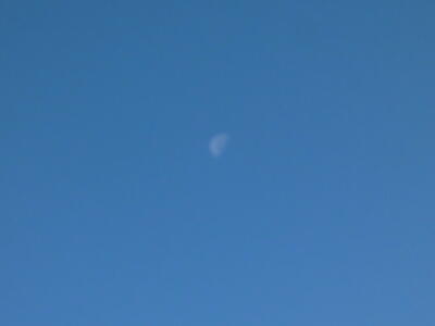晴れて良い天気となりました。空には、白い月がきれいに見えています。