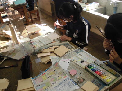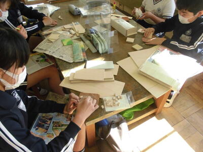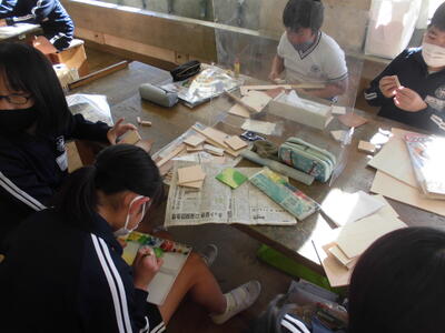( 本箱や収納ケースなど、思い思いの作品を作っていきます。)
