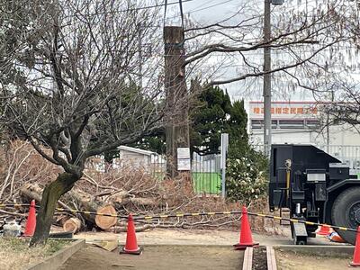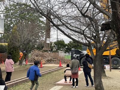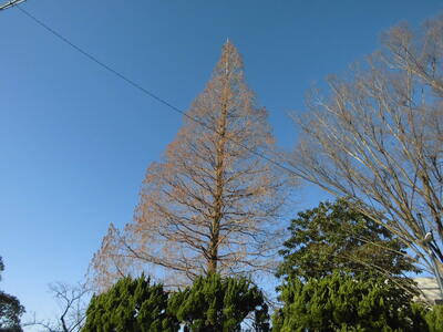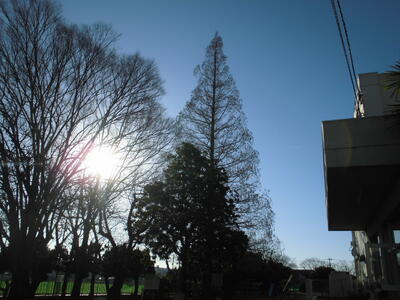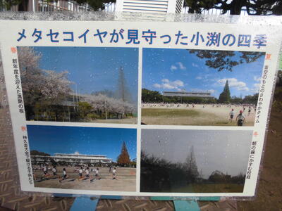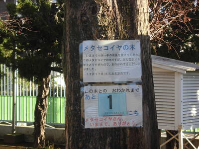 ( ↓ 昨日は、学校のメタセコイヤの木が伐採により、お別れとなりました。)