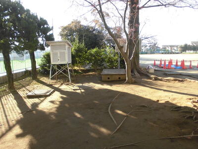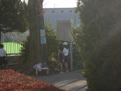 メタセコイヤのまわりを、校務員さんが朝のうちに、ちり一つないようにきれいに掃いてくれました。
