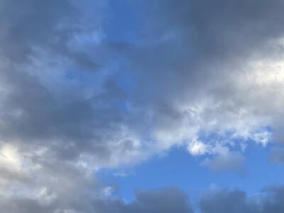 ( ↓ 昨日の雨も上がって、晴れ間も見える春日部の今日の朝の空。)