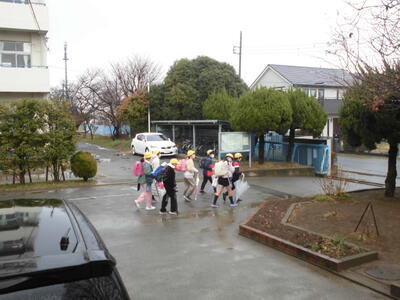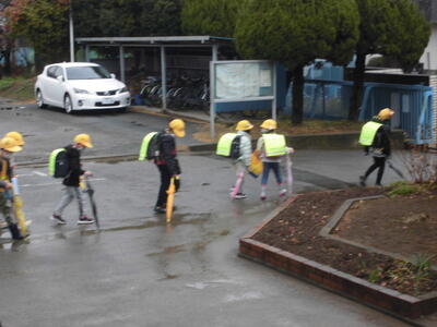 ( ↓ 子供たちが下校する時間には、雨もあがりました。)