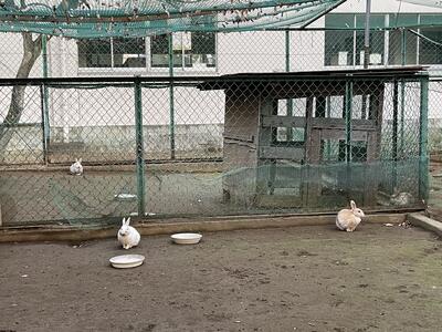 学校では、来年の干支(えと)のウサギが元気に過ごしています。冬休み中は、先生たちや一年生の当番さんが世話をしています。