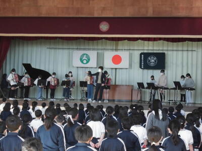 器楽クラブの上手な演奏と、みなのきれいあ歌声が体育館に響きました。