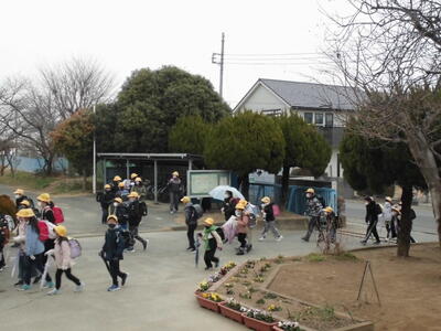( ↓ 子供たちが下校する時間には、雪はみぞれまじりの雨に変わりました。)