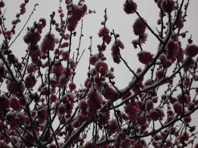 ( ↓ 赤い梅の花もたくさん咲いていて、対照がきれいです。)