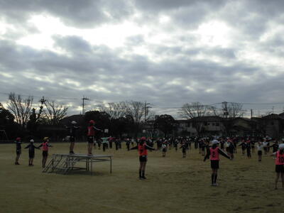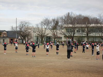 ( ↓ 運動委員を中心に準備体操をおこないます。)