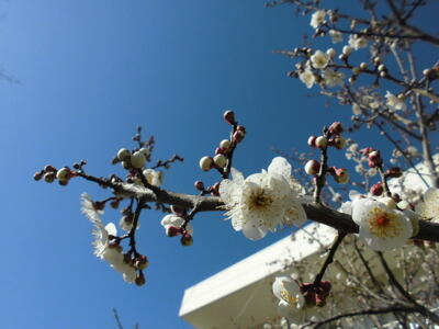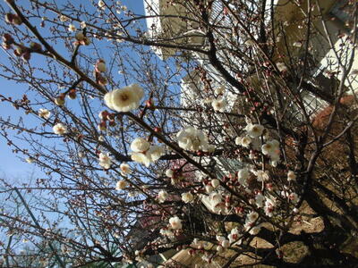学校には白梅の花がきれいに咲き始めています。