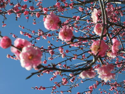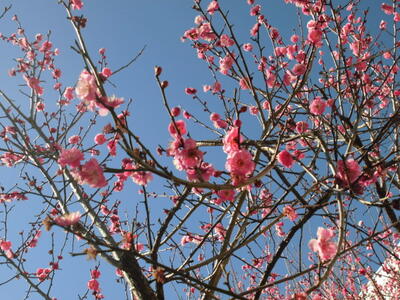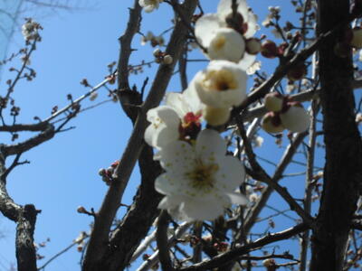 ( ↓ 赤い梅の花もたくさん咲いていて、対照がきれいです。)