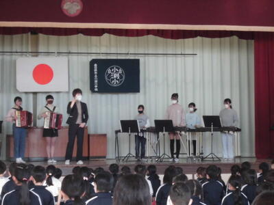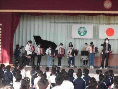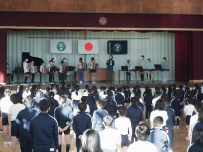器楽クラブの上手な演奏と、みなのきれいあ歌声が体育館に響きました。