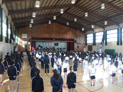 今朝は今年最後御音楽朝会。久しぶりに全校で体育館に集まっておこないました。