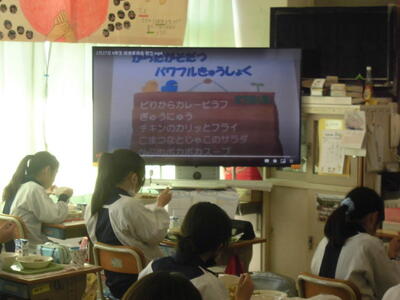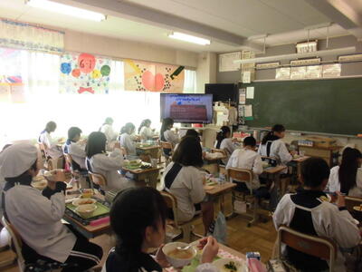 ( ↓ 給食委員会が、献立の紹介のための動画を作成しました。各教室で視聴します。)