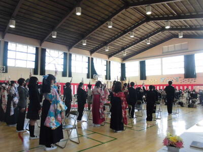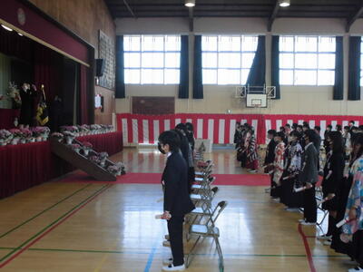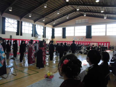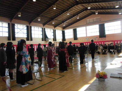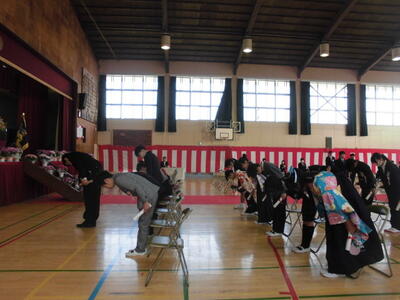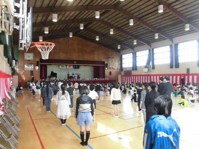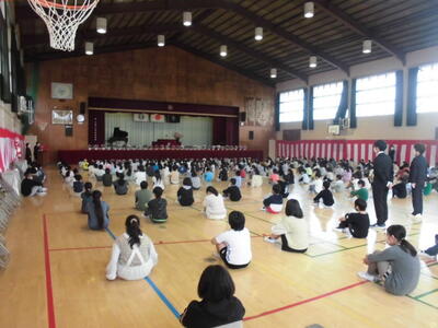今日で今年度の三学期が終わります。体育館では、今年度の修了式をおこないました。