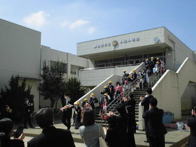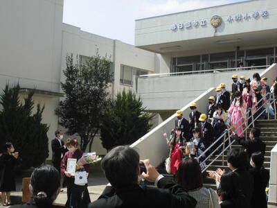 ( ↓ 大きな拍手に見送られて、卒業生が会場をあとにしました。)