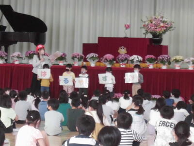 ( ↓ 全校児童を代表して一年生が今年の感想を発表しました。)