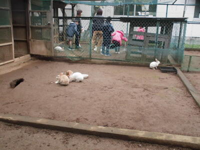 春休み中は、一年生のウサギ当番さんが来校して、エサの世話や小屋の清掃をおこなってくれています。