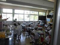 今日から1年生の給食が本格的に始まりました。先週までは牛乳やパンなど、慣らし給食でしたが、今日からみんなと同じメニューになりました。今日のメニューは、カレーライスにビーフンのソテー(詳しくは本日の給食をご覧ください)。カレーとご飯の配膳は先生がやりましたが、牛乳とビーフンは当番の子が行いました。学校給食は大切な学習の一つ、食べるだけでなく、様々なことを学ぶ機会としています。毎食を大切にしていきます。