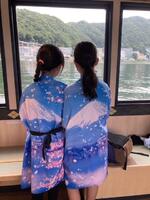 河口湖遊覧船に乗っています