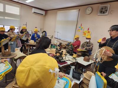 田中帽子店に移動しました。創業明治13年、歴史ある春日部の名産品。ミシンであっという間に帽子ができる様をみんな、息をのんで見守りました。