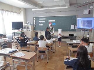 今日は、3年生の外国語の授業におじゃましました。カードに好きな形をはり、色を塗って模様を作ります。2人組になり、作ったカードを英語で紹介していました。その後一人ずつみんなの前で紹介できました。全員の手拍子とともに「Good job.」の掛け声をかけられると、発表した子も笑顔になりました。