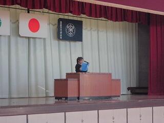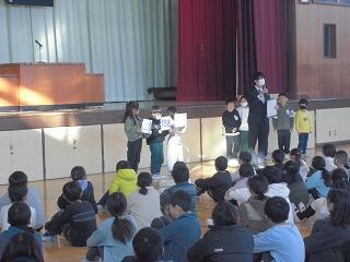 今日は第2学期の終業式がありました。全校児童が定刻前に集まり、立派な態度で参加できました。小渕小自慢の小渕っ子です。校長先生から、年末年始の行事を体験してほしいということの他に3つの宿題が出ました。①明るく感じのいいさあいさつをする、②感謝の気持ちを伝える、③自分の命を守る行動をする、です。この時期ならではあいさつもあることを紹介すると、下校時には早速気持ちのよいあいさつをしてくれました。3学期も期待しています。式の中で全校を代表して3年生の児童が2学期を振り返って発表してくれました。2学期にがんばったことを中心に、目標を立てて達成に向けて努力すること、達成できなったとしても次への課題につなげることについて、堂々と発表できました。大変立派です。