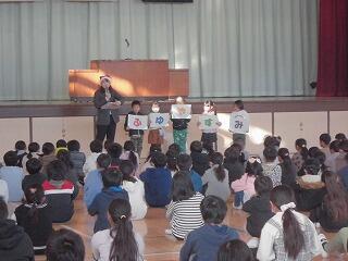 次に小渕サンタが登場しました。小渕っ子にお話のプレゼントです。「ふゆやすみ」の頭文字をとって【ふりかえりを大切にする】【ゆとりを持った生活を心がける】【やくそくを守る】【すすんで取り組む】【みんな元気で会おう】ということについてお話がありました。サンタさん、ありがとう。