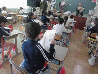 今日は春日部市大凧保存会の方を講師にお迎えし、1年生が凧作りに挑戦しました。ダイヤ型の紙に自由に絵を描き、凧の骨を付け、糸を張り、しっぽをつけて完成です。完成した凧は世界にひとつだけの凧となりました。完成した凧を持って外に出てみましたが、穏やかな陽気で風がほとんどありませんでした。「風がなければ起こせばいい!」凧糸を手に持って走ることで凧は空に上がっていきました。程よい風が吹いた日を見計らって、ご家庭でも凧あげに挑戦してみてはいかがでしょうか。その際には電線や木の枝など十分お気を付けください。