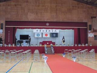 今日は春分の日ですが、卒業式を彩るお花が到着しました。体育館ステージ上の演台に飾り、いよいよ舞台は整いました。あとは、卒業生を迎えるだけです。この後、天気は下り坂のようですが、明日は晴れるといいですね。卒業生の皆さん、今日は暖かくして、早めに寝ましょう。
