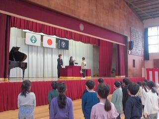第44回卒業証書授与式が挙行されました。卒業式のメイン、卒業証書授与が始まって間もなく、大きな揺れがありました(震度4の地震)が、小渕っ子は取り乱すことなく、冷静に身の安全を確保する行動がとれました。これまでの学びが生きた瞬間でした。その後式は再開され、卒業生47名が多くの方の祝福のもと、小渕小学校を巣立っていきました。歌も言葉も心のこもった、素晴らしいものでした。在校生を代表して出席した5年生も大変立派でした。卒業生のみなさん、これまでの学びをもとに、中学校生活をますます充実したものにしてください。みなさんの活躍を職員一同期待しています。保護者の皆様、ご来賓の皆様、ご参加くださった皆様、ありがとうございました。