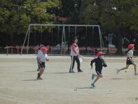 校庭では、一年生が個人写真の撮影をしたり、元気いっぱい、体育にも取り組んだりしました。