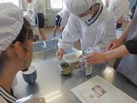 5年生が家庭科の時間に、「クッキング はじめの一歩」として、ガスコンロでお湯を沸かし、お茶を煎れました。やかんのお湯が沸いたかどうか心配したり、やけどをしないようにお湯を注いだりしながら活動しました。