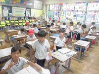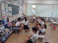 教室では、タブレットを使ってドリル学習したり、調べたものを絵に描いたりするクラス、オルガンの音に合わせてイス取りゲームをしているクラス、怖い話をしているクラス、残っている課題を進める子など様々でしたが、雨の日を安全に過ごしていました。
