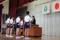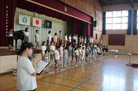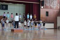 今日の体育朝会は、市内陸上大会で入選した選手への表彰を行いました。
