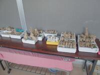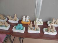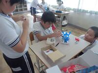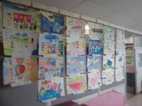 各クラスでは、完成した図工の作品が展示されています。