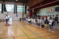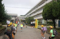 東中生徒会の卒業生が来て、児童と元気よくあいさつを交わしてくれました。