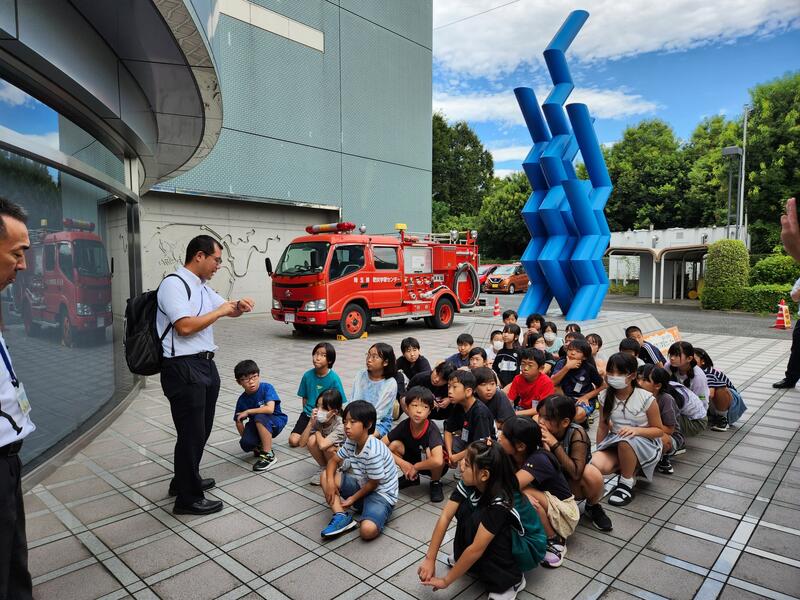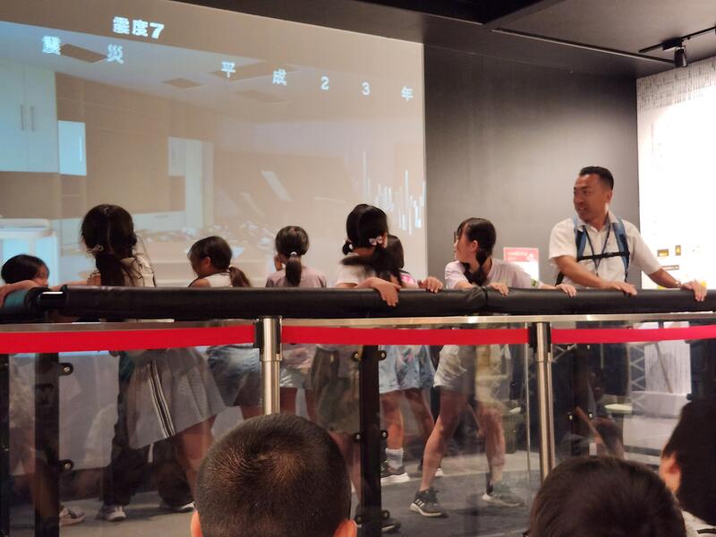 防災学習センターに到着しました。これから様々な災害時の行動について学びます。