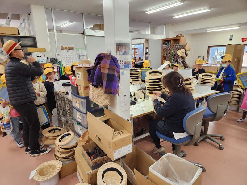 田中帽子店に到着しました。144年の歴史をもつ老舗。職人さんの技に見とれました。