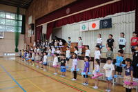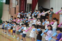 全校による「うんぱっぱ」では、3年生によるタンバリン演奏と、4年生によるダンスを交えながら楽しく歌いました。