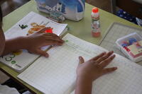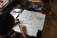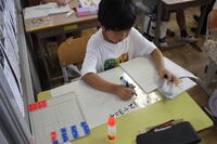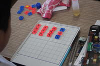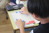 問題の答えを探り、その解決法を見つけるために、おはじきや図、ことば、式を使って考えます。