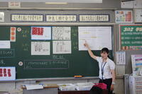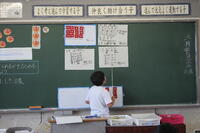 小渕小学校では、毎日の健康観察の状況を係や当番の児童が出欠黒板に記入しています。