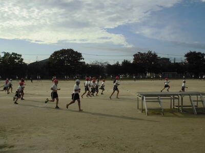 11月になりました。朝の校庭では、持久走大会にむけて子供たちが元気には走っています。