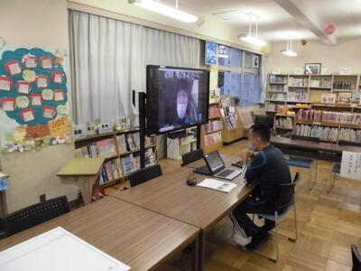 例年は、ブロックごとに一会場に集まり行っていましたが、今年はコロナ禍で集まることができません。そこで、小渕小のブロックでは、リモートで各学校をつないで、オンライン会議を行うことになりました。