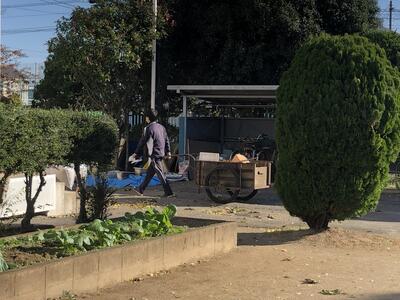 ( ↓ 子供たちが畑に来る前から、栽培ボランティアさん・花植えボランティアさんが、準備をしてくれています。)