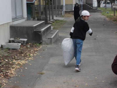 今日は委員会活動がありました。栽培委員会や運動委員会が、敷地内や校庭の落ち葉などを集めてきれいにしてくれています。